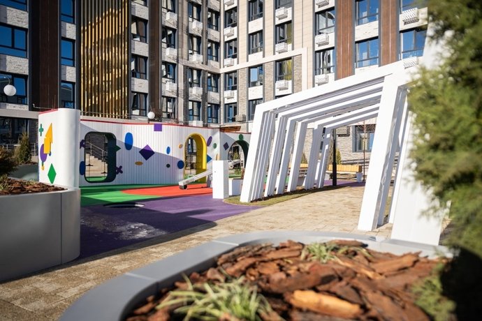 На площади 0,5 гектара создан собственный парк с аллеями, зонами отдыха и спортивными площадками. Двор без машин, с прогулочными дорожками и детскими игровыми зонами. Здесь можно гулять с детьми, устраивать пикники или заниматься спортом на свежем воздухе. Живя в комплексе Печорин Кисловодск, вы дышите хвойным воздухом и ощущаете себя на курорте — прямо у порога своего дома.